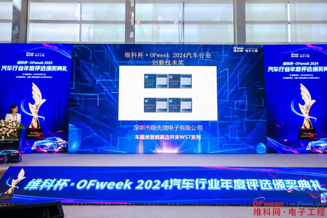 深圳市穩(wěn)先微電子有限公司(簡稱“穩(wěn)先微”)攜高邊智能開關WS7系列產品亮相展會現(xiàn)場,憑借產品創(chuàng)新性與技術優(yōu)勢,獲得現(xiàn)場專業(yè)觀眾的高度關注與肯定。在同期舉辦的OFweek 2024中國國際汽車電子大會中,穩(wěn)先微以高可靠性、高穩(wěn)定性的智能高邊開關產品榮獲“2024汽車行業(yè)創(chuàng)新技術獎”,這一榮譽是對穩(wěn)先微在汽車電子領域持續(xù)深耕、不斷突破的褒獎。
